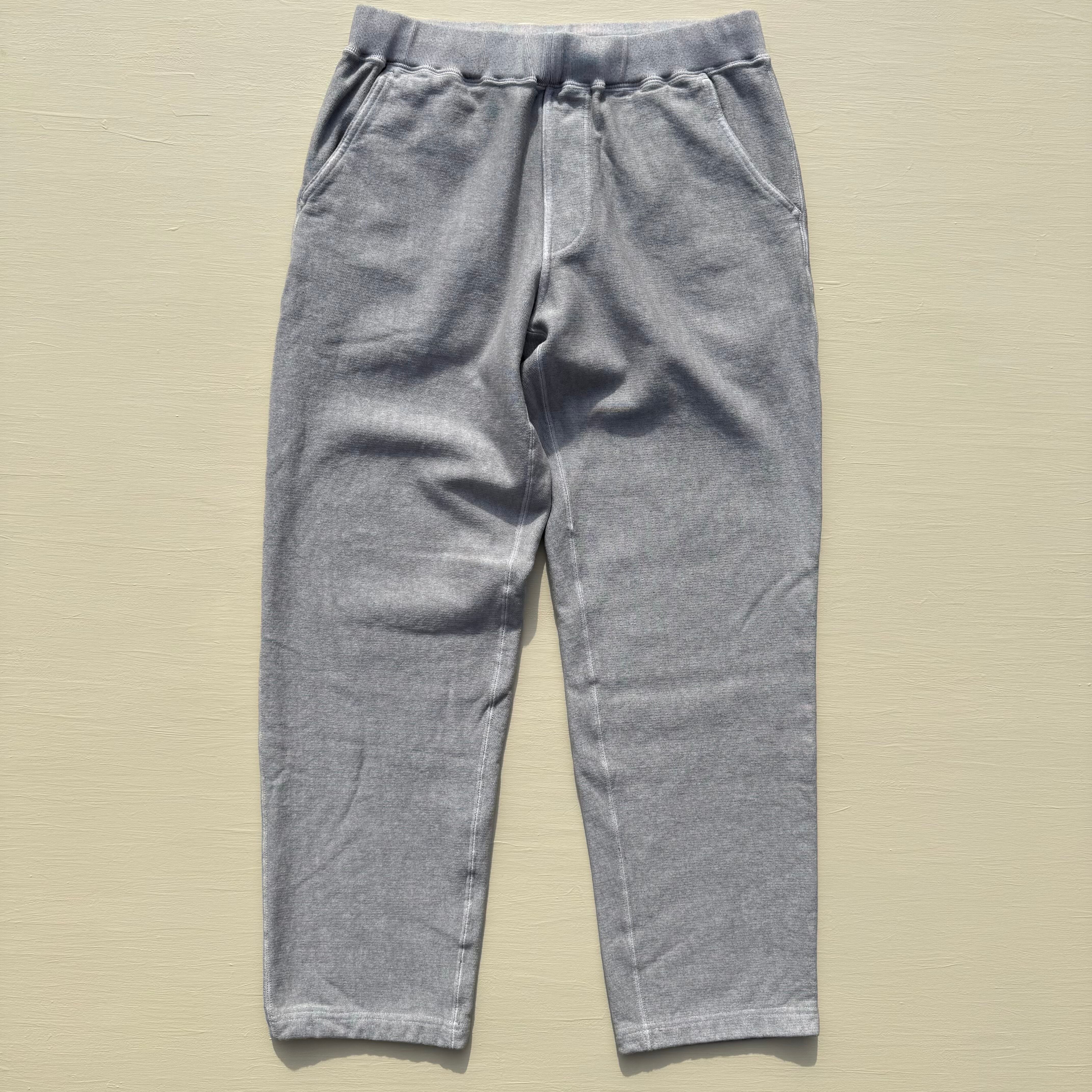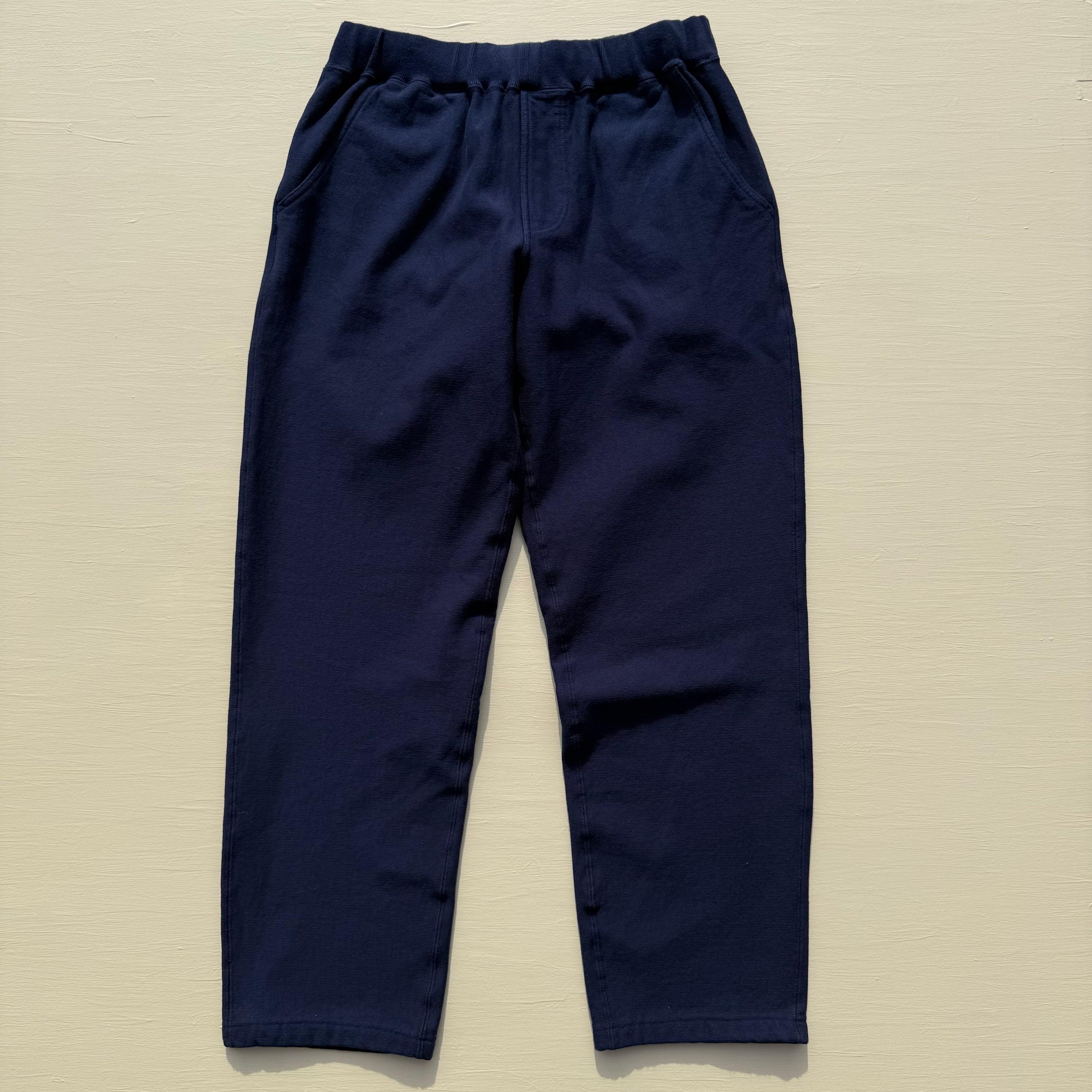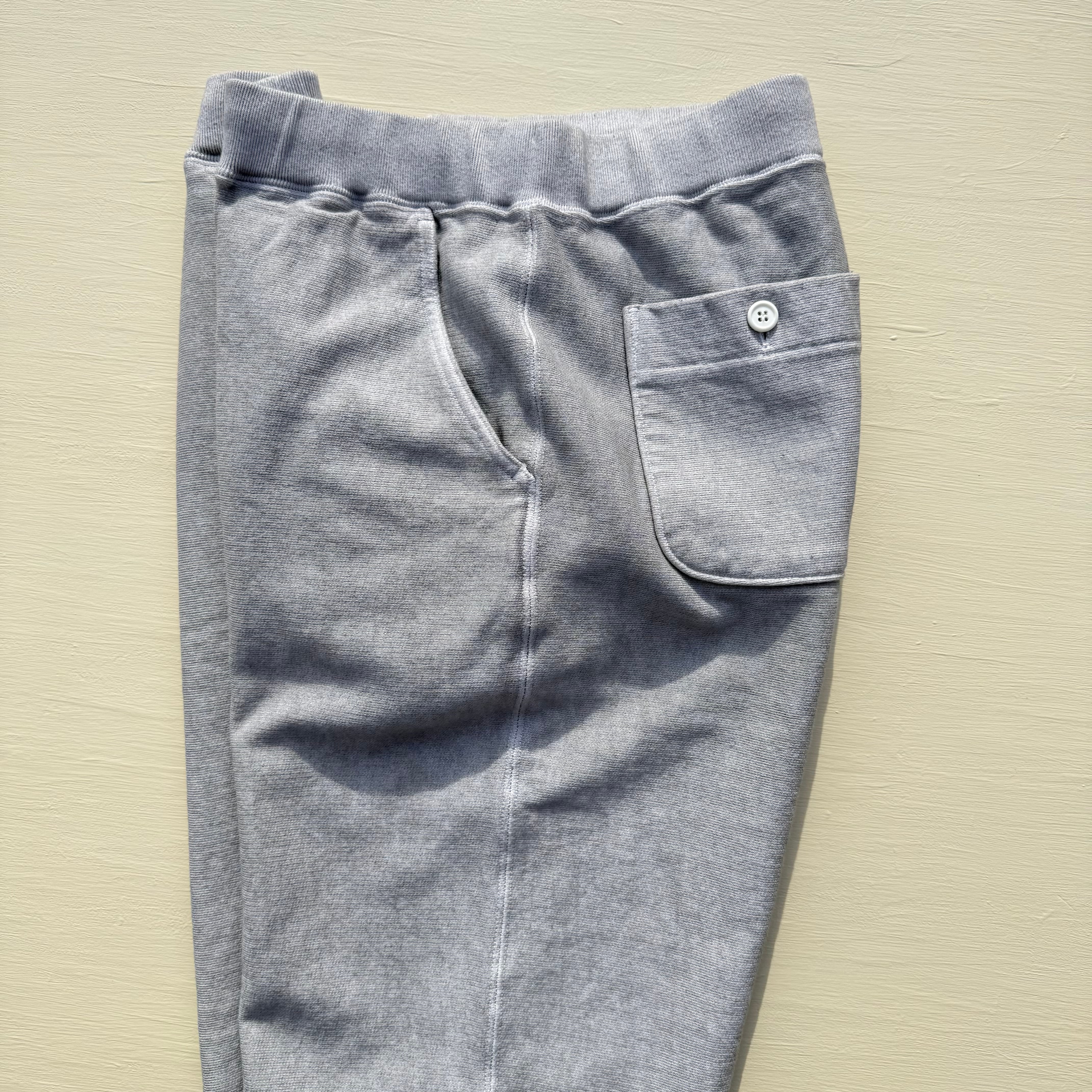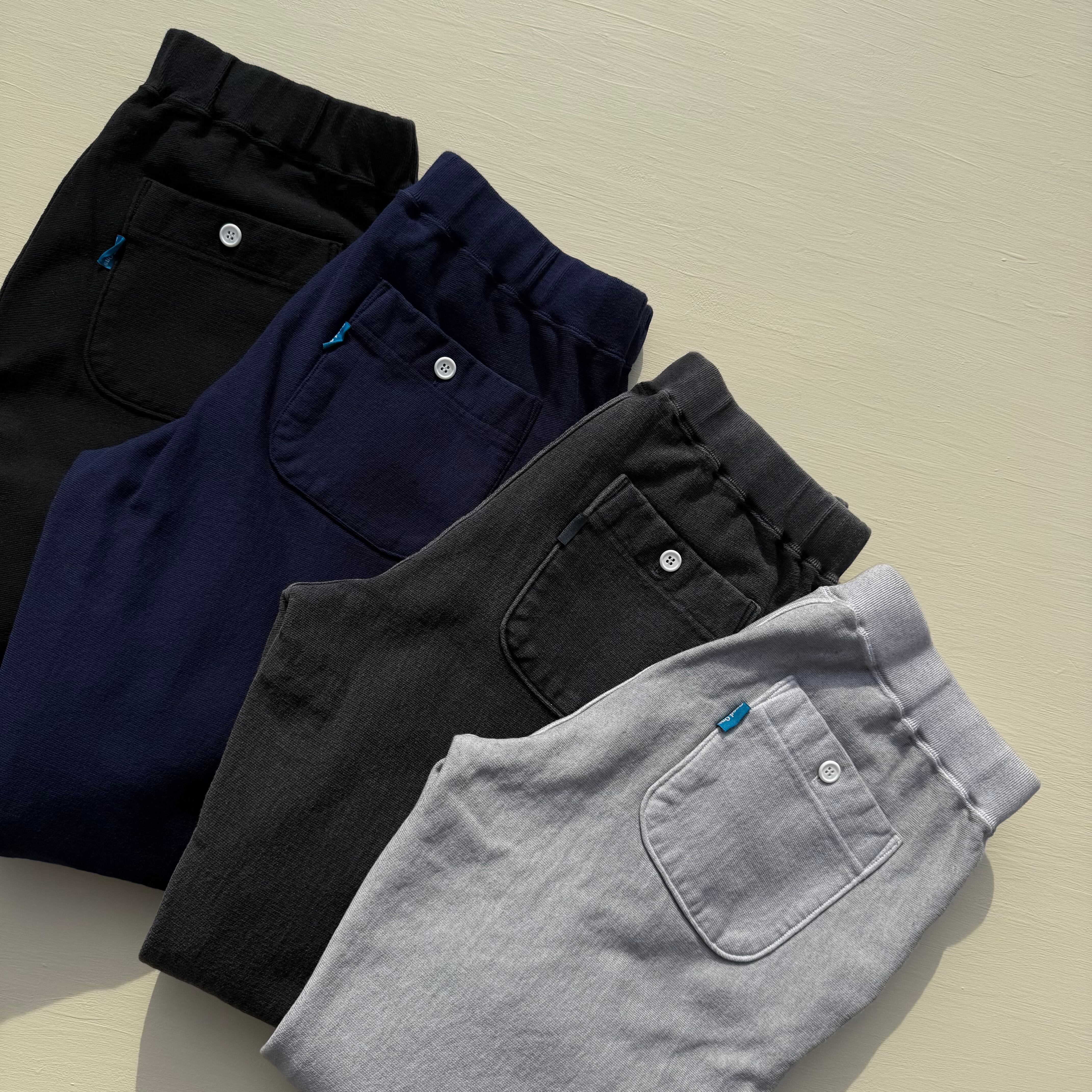 100%コットンの13オンスヘビースウェット生地は肉厚で目が詰まっており、裏側がパイル状になっているため、丈夫で膝が出ず柔らかな穿き心地。