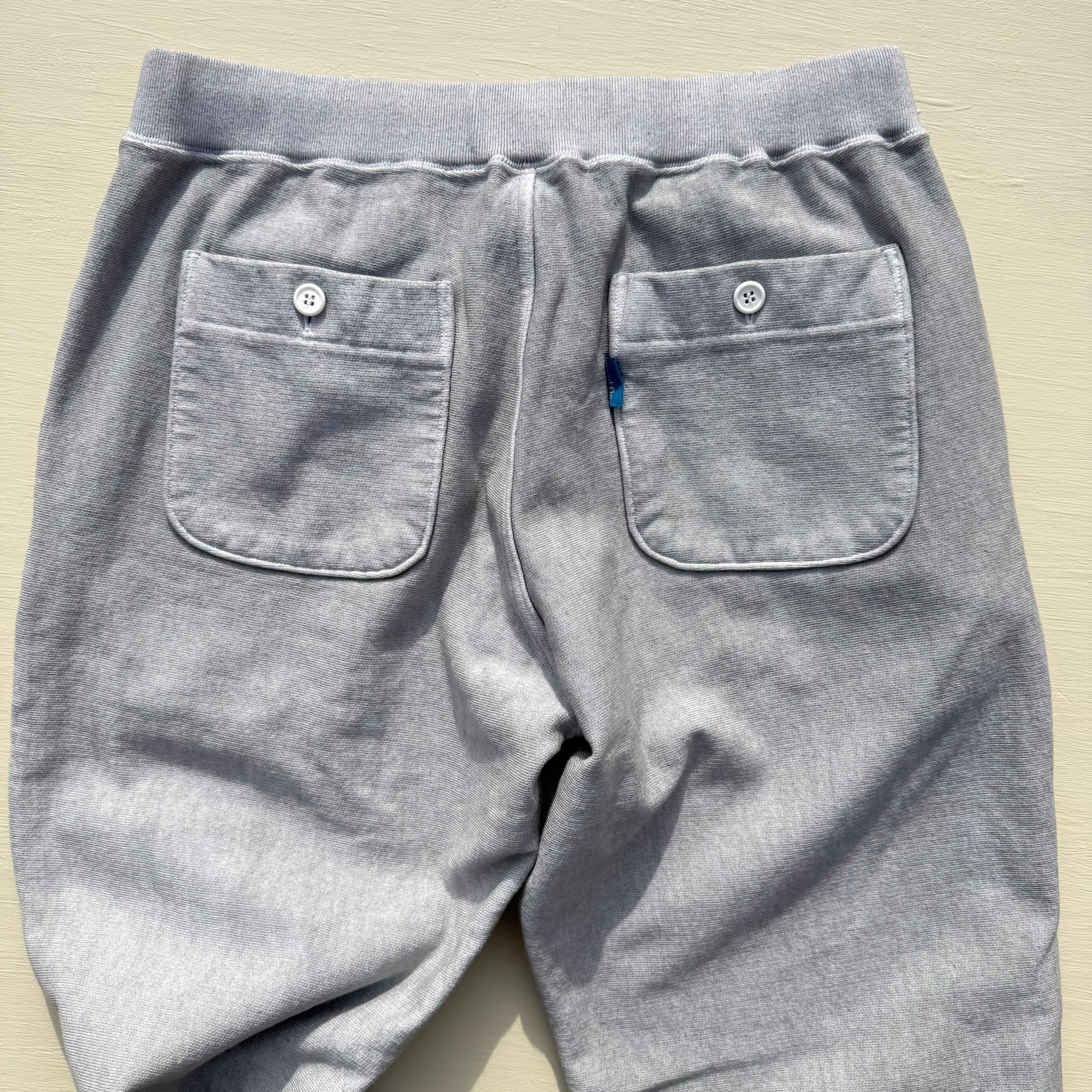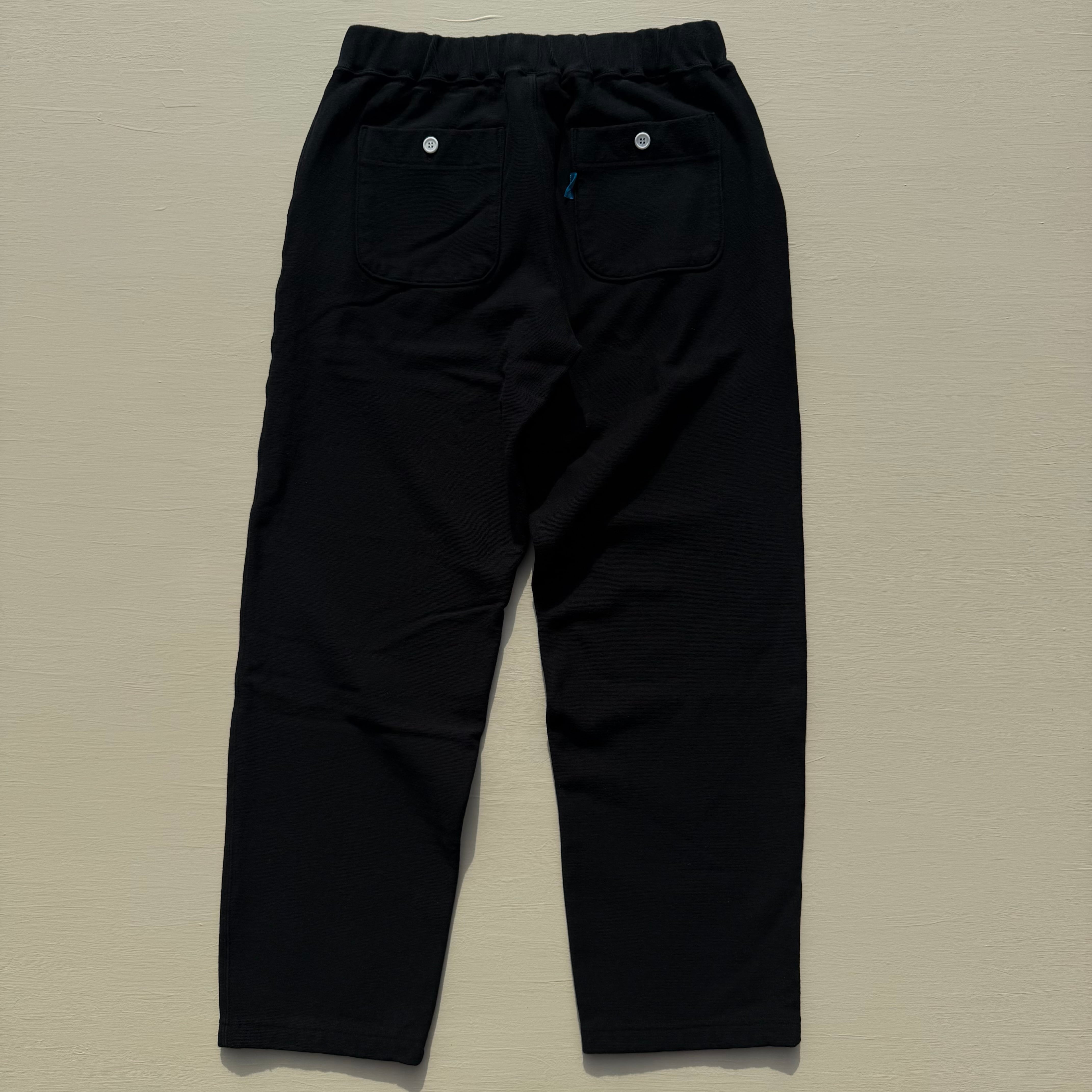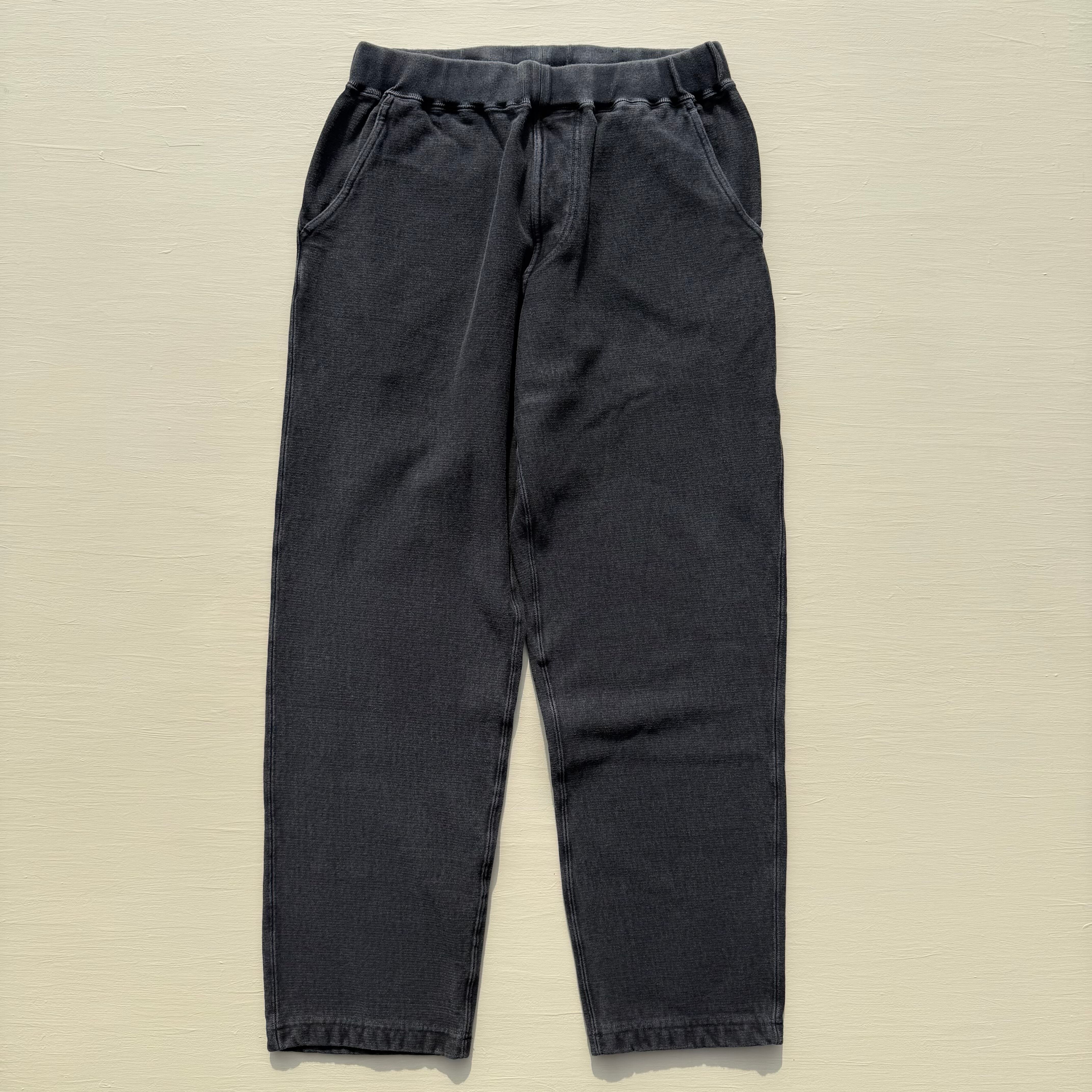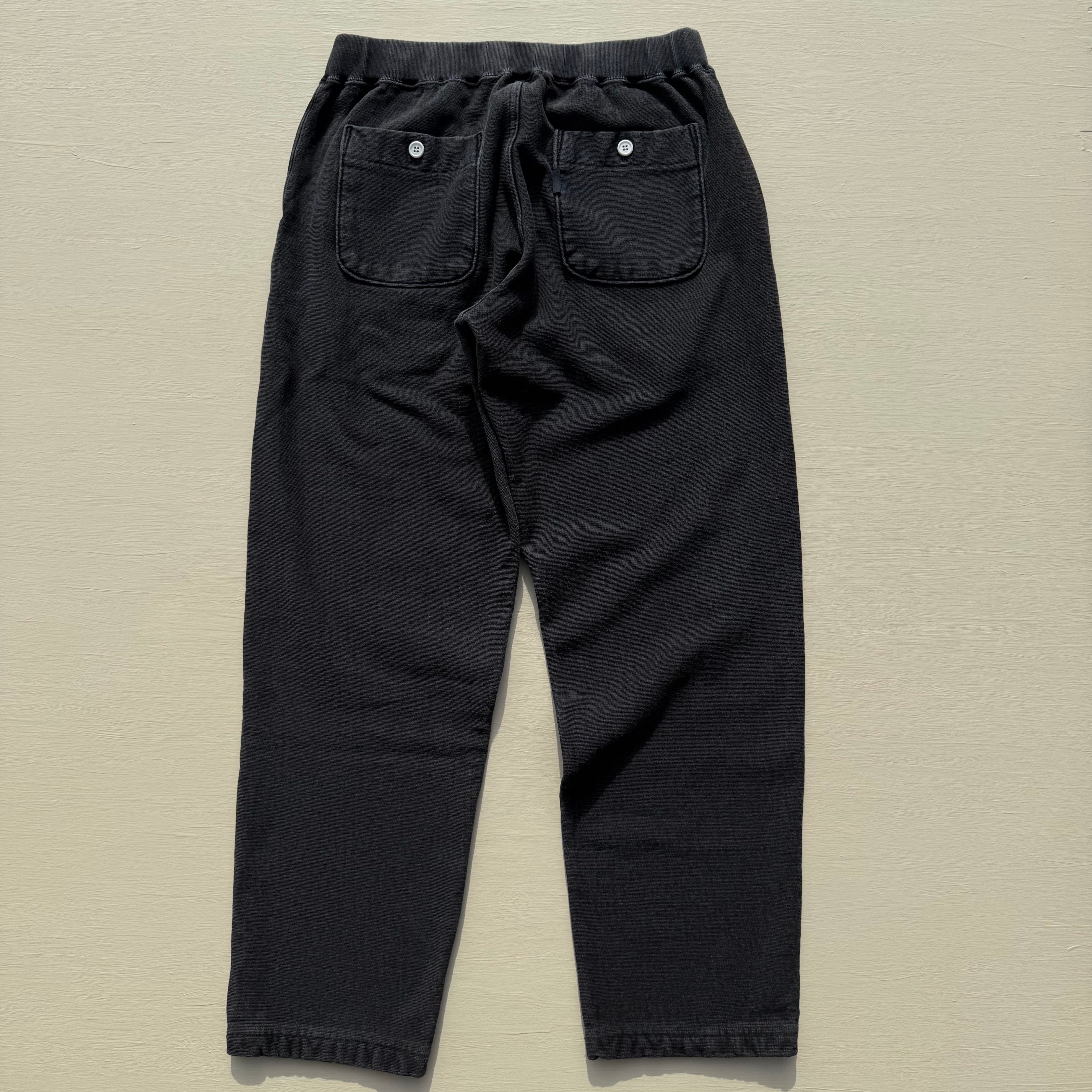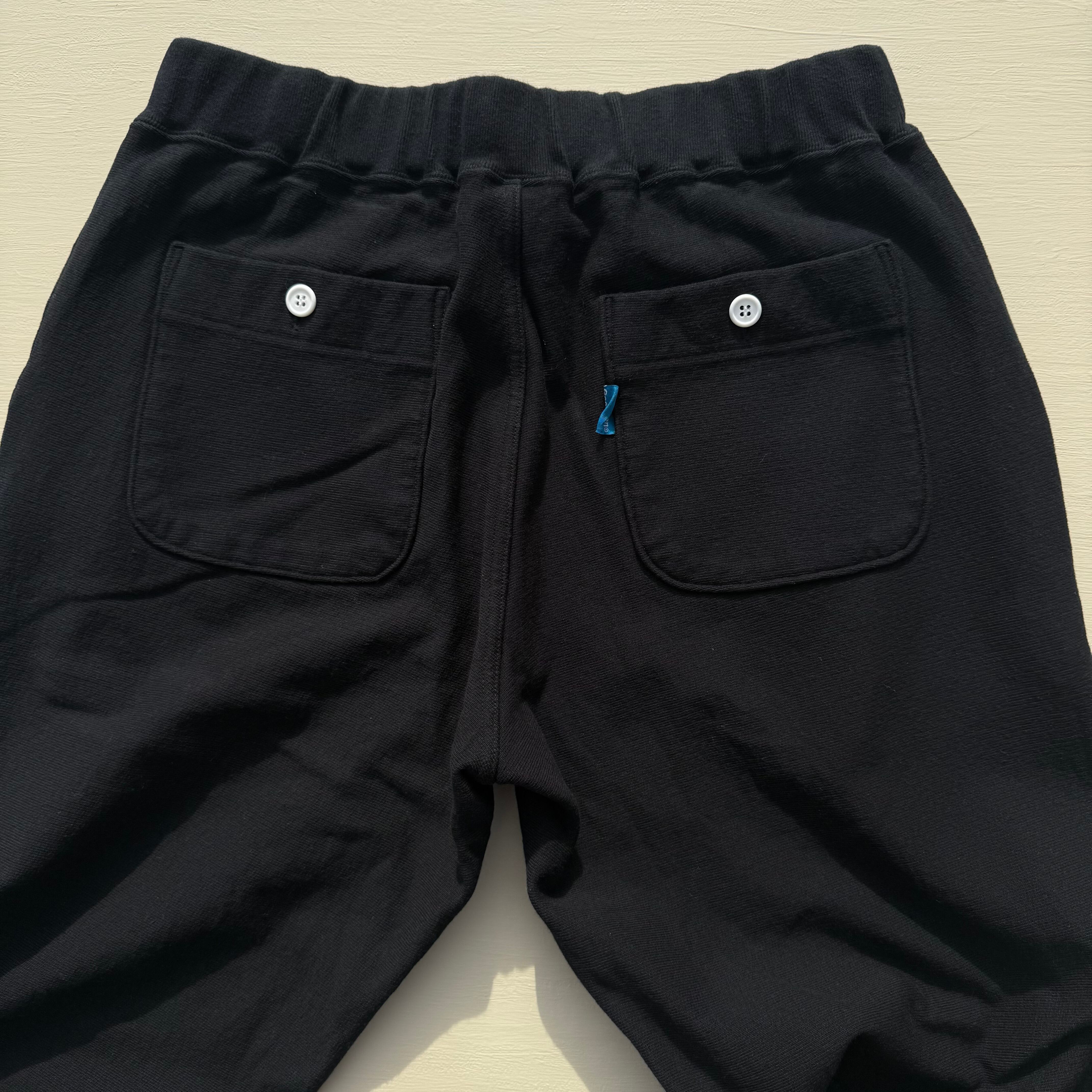100%コットンの13オンスヘビースウェット生地は肉厚で目が詰まっており、裏側がパイル状になっているため、丈夫で膝が出ず柔らかな穿き心地。