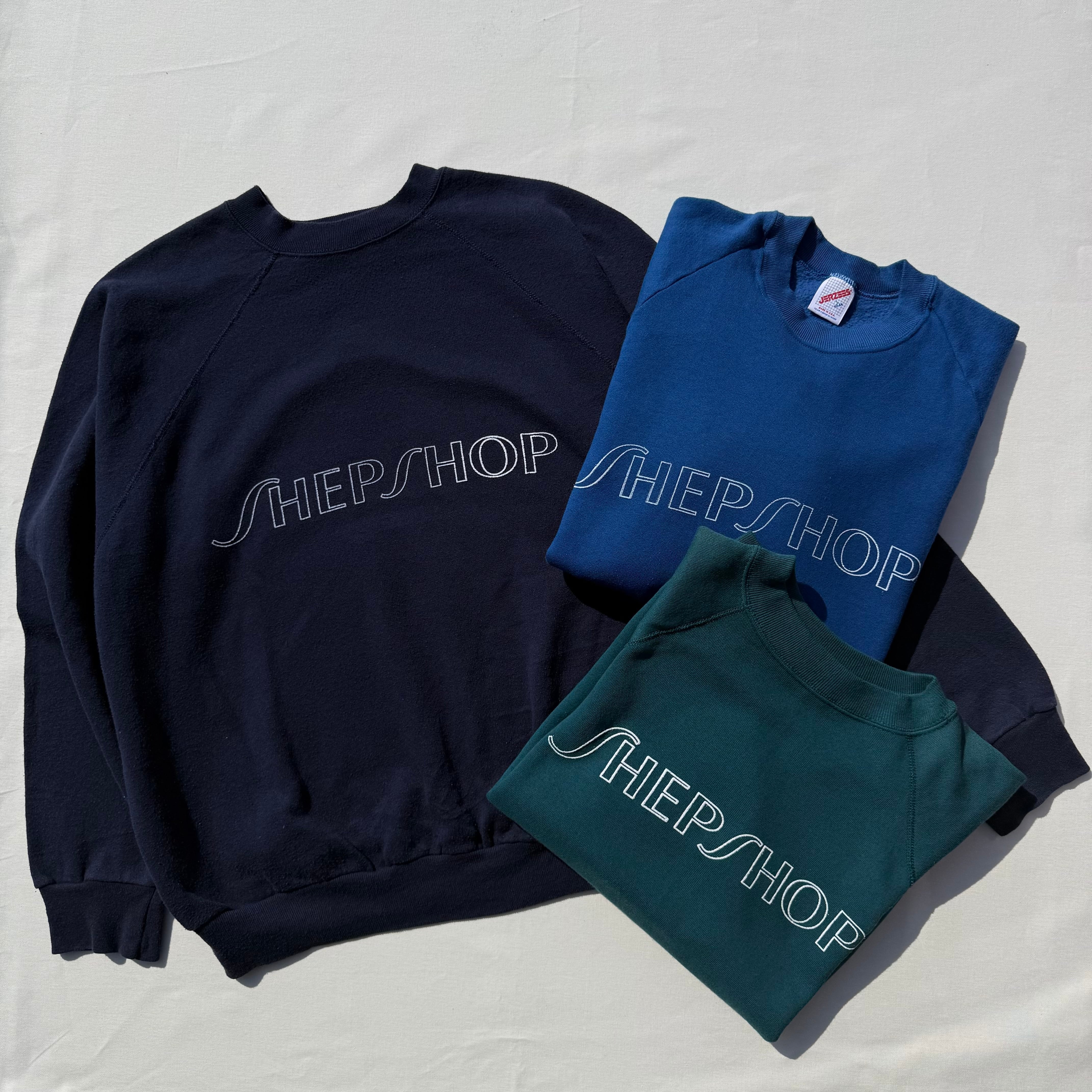 彼のスタジオxショップ”SHEPSHOP"のオリジナルスウェットシャツ。