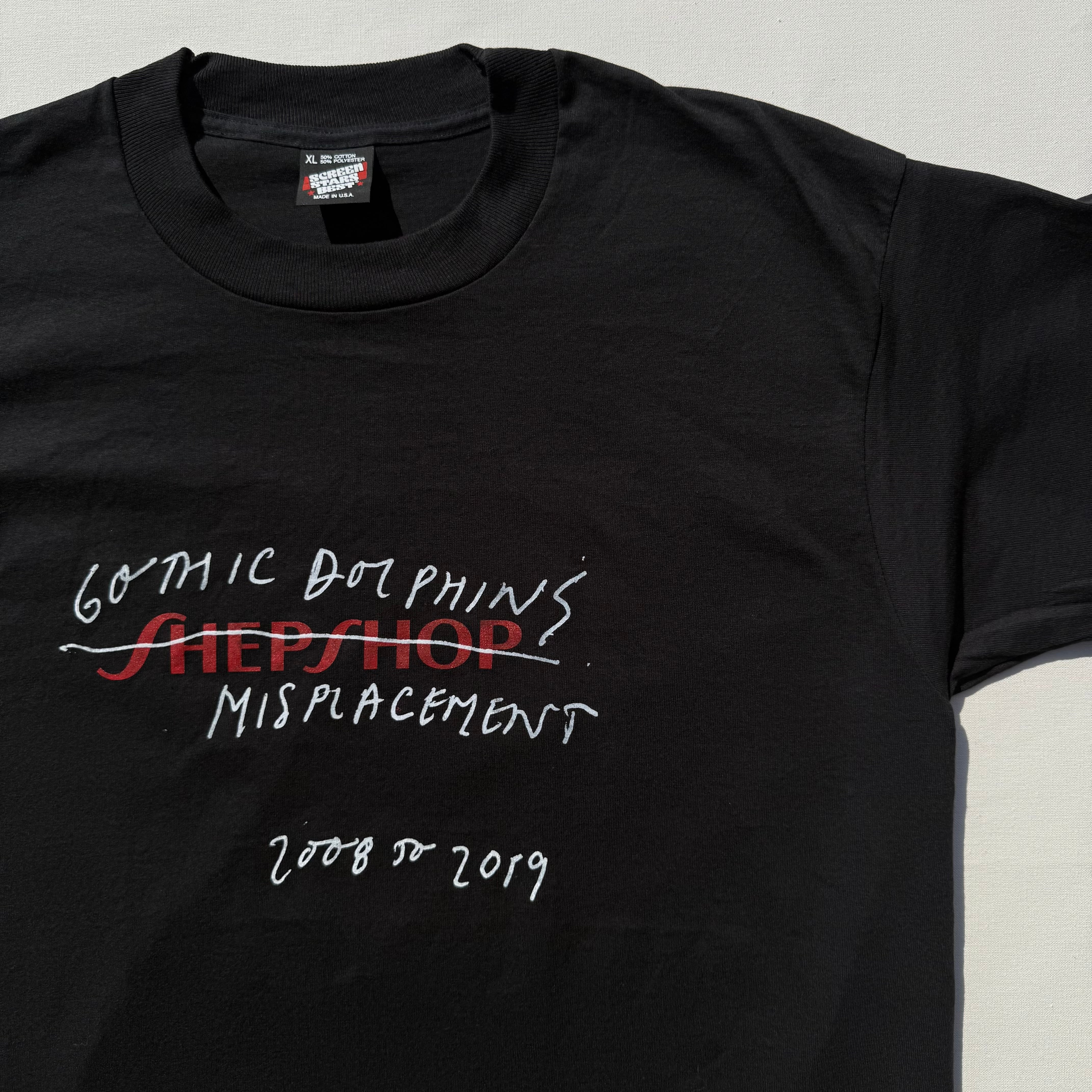 LAを拠点に活動しているアーティストOrion Shepherd x Gothic Dolphins のT-シャツ。 デッドストックのSCREEN STARS BESTボディにプリント 50% Cotton 50% Polyester Size XL 着丈74㎝ 身幅58㎝ 肩幅51.5㎝ 袖丈20.5㎝ ※採寸値には若干の誤差がある場合もございます。 デッドストック品の為洗濯後縮みがあるかもしれません。