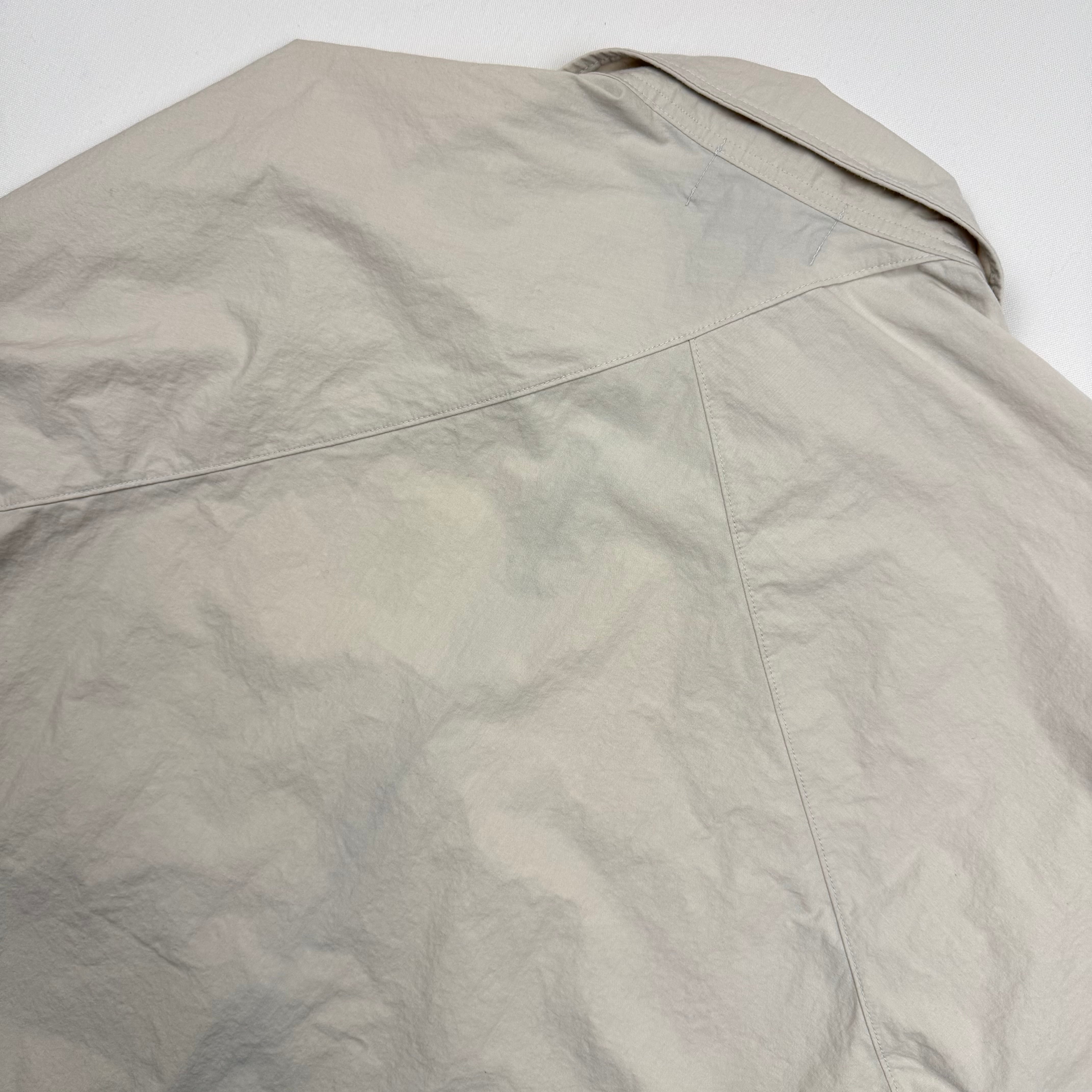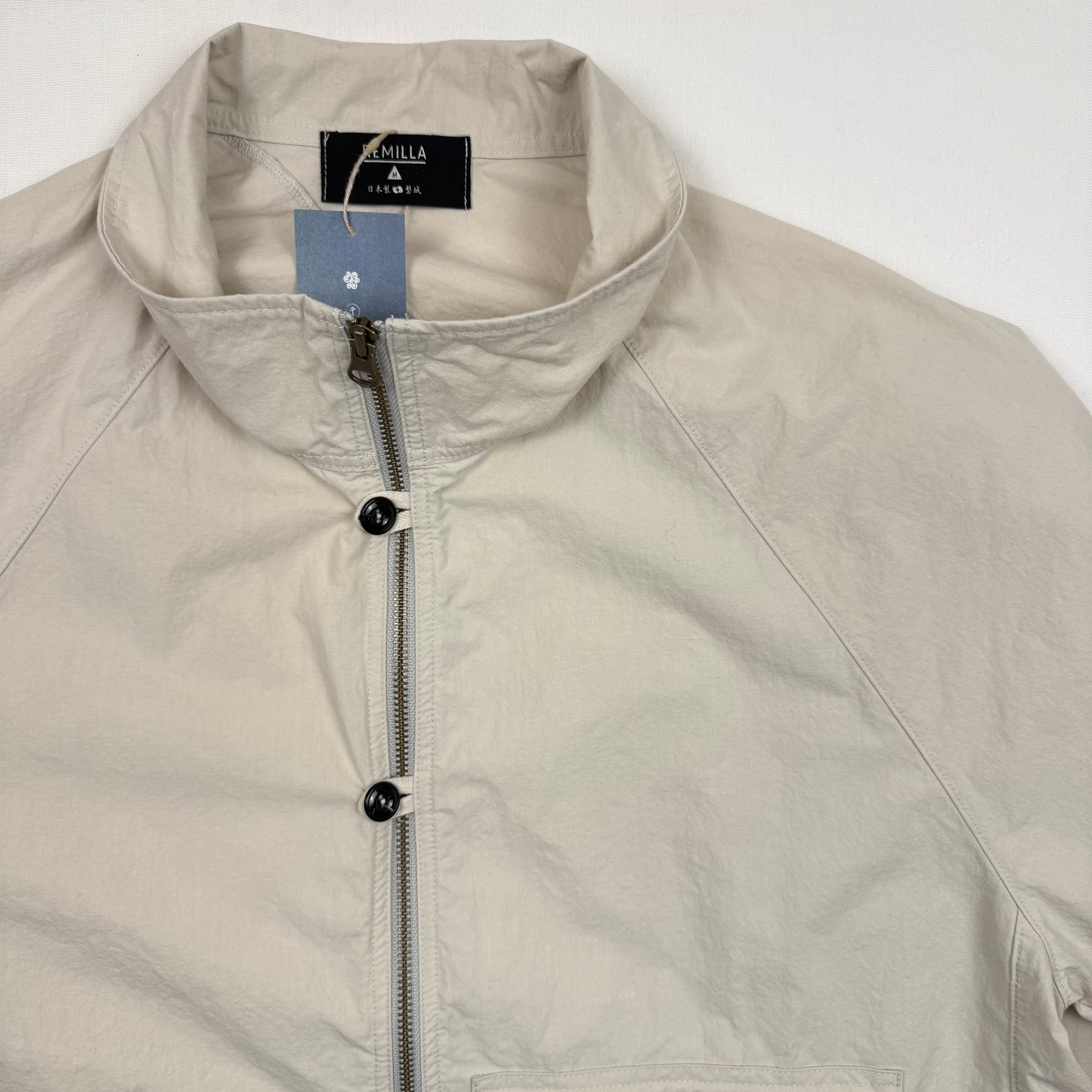 薄手ながらハリやコシのある生地でウィンドブレーカー的な役割をする通年使えるアイテムです。 50% Cotton 50% Nylon Size Spec M 着丈69㎝ 身幅58㎝ 裄丈91.5㎝ L 着丈71㎝ 身幅60.5㎝ 裄丈93㎝ ※採寸値には若干の誤差がある場合もございます。