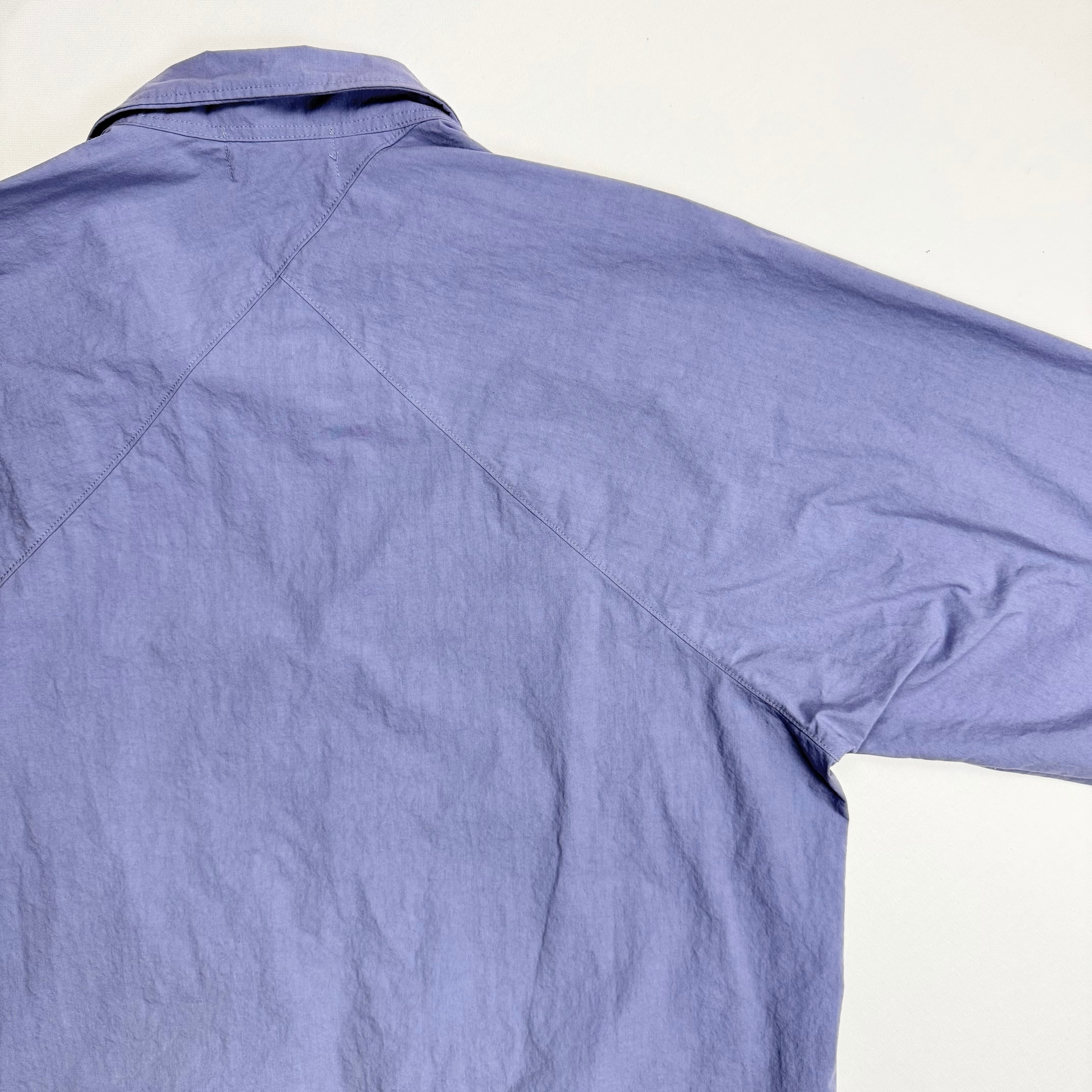 薄手ながらハリやコシのある生地でウィンドブレーカー的な役割をする通年使えるアイテムです。 50% Cotton 50% Nylon Size Spec M 着丈69㎝ 身幅58㎝ 裄丈91.5㎝ L 着丈71㎝ 身幅60.5㎝ 裄丈93㎝ ※採寸値には若干の誤差がある場合もございます。